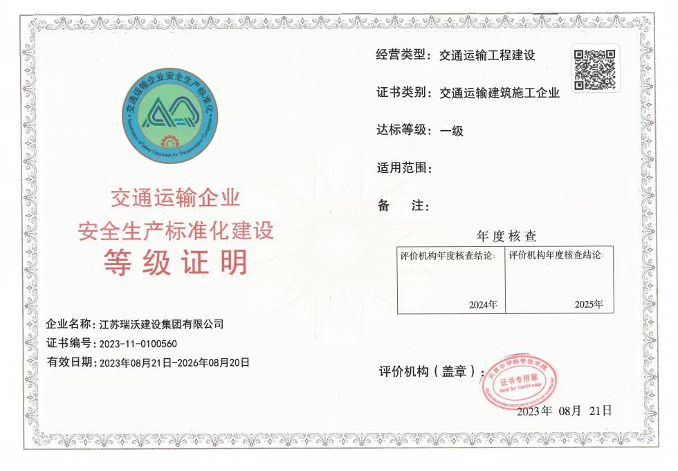 多年来,公司本着敬业、实干、团队创新”的企业精神,全面贯彻质量、环境、职业健康与安全“三合一”国际认证体系标准,不断深化管理、创新机制,创造了卓越的建设业绩。先后承建了省内外大批等级标准高、技术难度大的市政、公路、隧道、桥梁项目。荣获国家级奖项“鲁班奖”、“李春奖”,国家优质工程奖参建项目。一大批工程评为江苏省优质工程“扬子杯”、“苏畅杯”,“全国建设工程项目施工安全标准化项目”、江苏省“文明工地”、“平安工地”,江苏省交通厅“品质工程”、江苏省“示范工程”。公司先后与大连理工大学、东南大学、长安大学、扬州大学等高校院所合作,建立校企研究中心、扬州市路桥隧工程技术研究中心、江苏省研究生工作站等研发机构,并成为江苏省第四批产教融合型试点企业。目前集团拥有江苏省工程技术研究中心、江苏省企业技术中心、江苏省博士后创新实践基地、江苏省工程研究中心,科技创新成果常年位居扬州市建筑业企业前列。